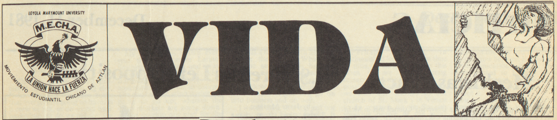 Vida newspaper, also called Vida Today, amplified the voices and concerns of the Chicana/o/x and other marginalized communities at Loyola Marymount University from the early 1970s until the late 1990s. Published by the university chapter of El Movimiento Estudiantil Chicano de Aztlán (M.E.Ch.A.) and moderated by the Department of Chicano Studies, the publication covered critical local, national, and international events impacting the Chicano/a/x community. It provided student journalists a platform to connect with over 2,000 readers across Los Angeles. Contributors to Vida informed their readership about the Coors Boycott and United Farm Workers strike on Delano grapes, U.S. interventionism in Latin and South America, income equality and workers' rights, bilingual-bicultural education and first-generation university student experiences, as well as the impact of developments in regards to affirmative action and immigration policy. Vida valued creative expression and published student submitted poetry in most issues.